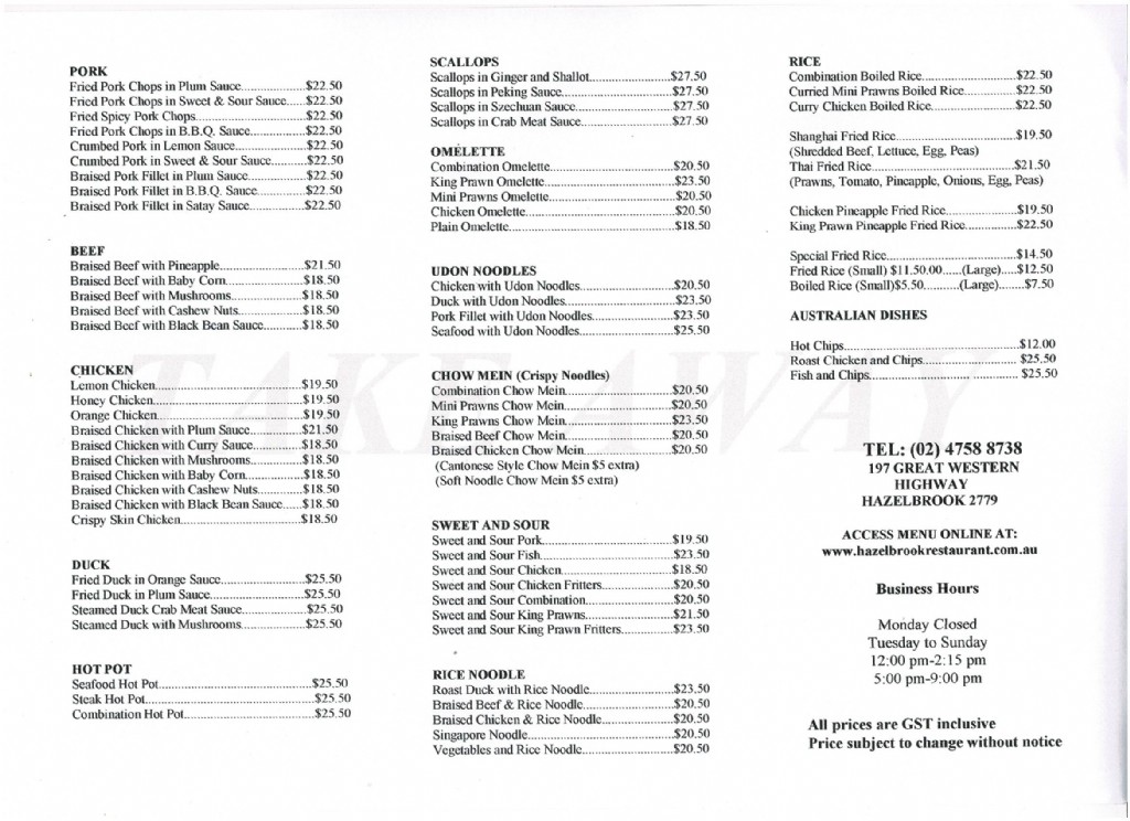 Takeaway Menu